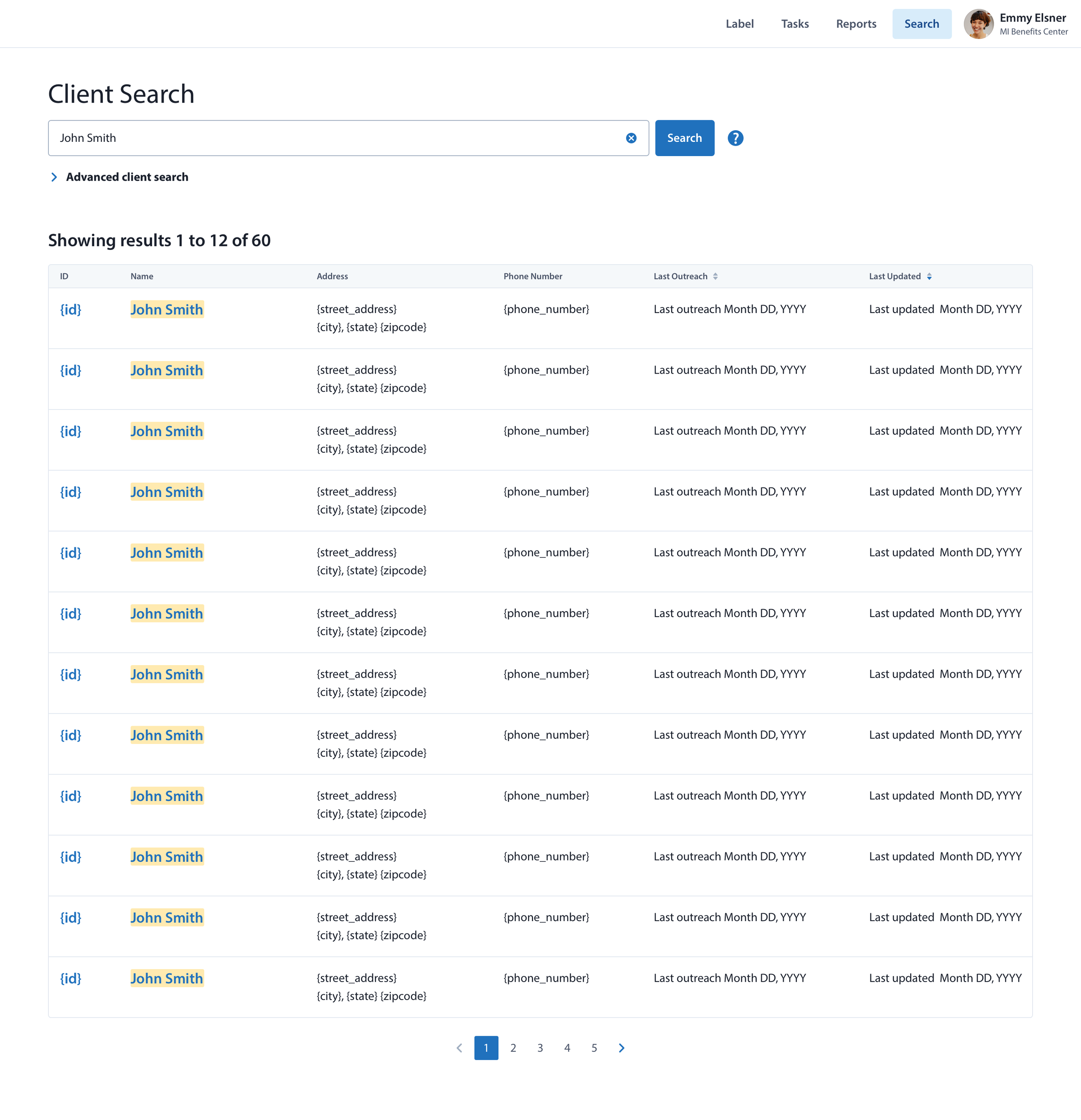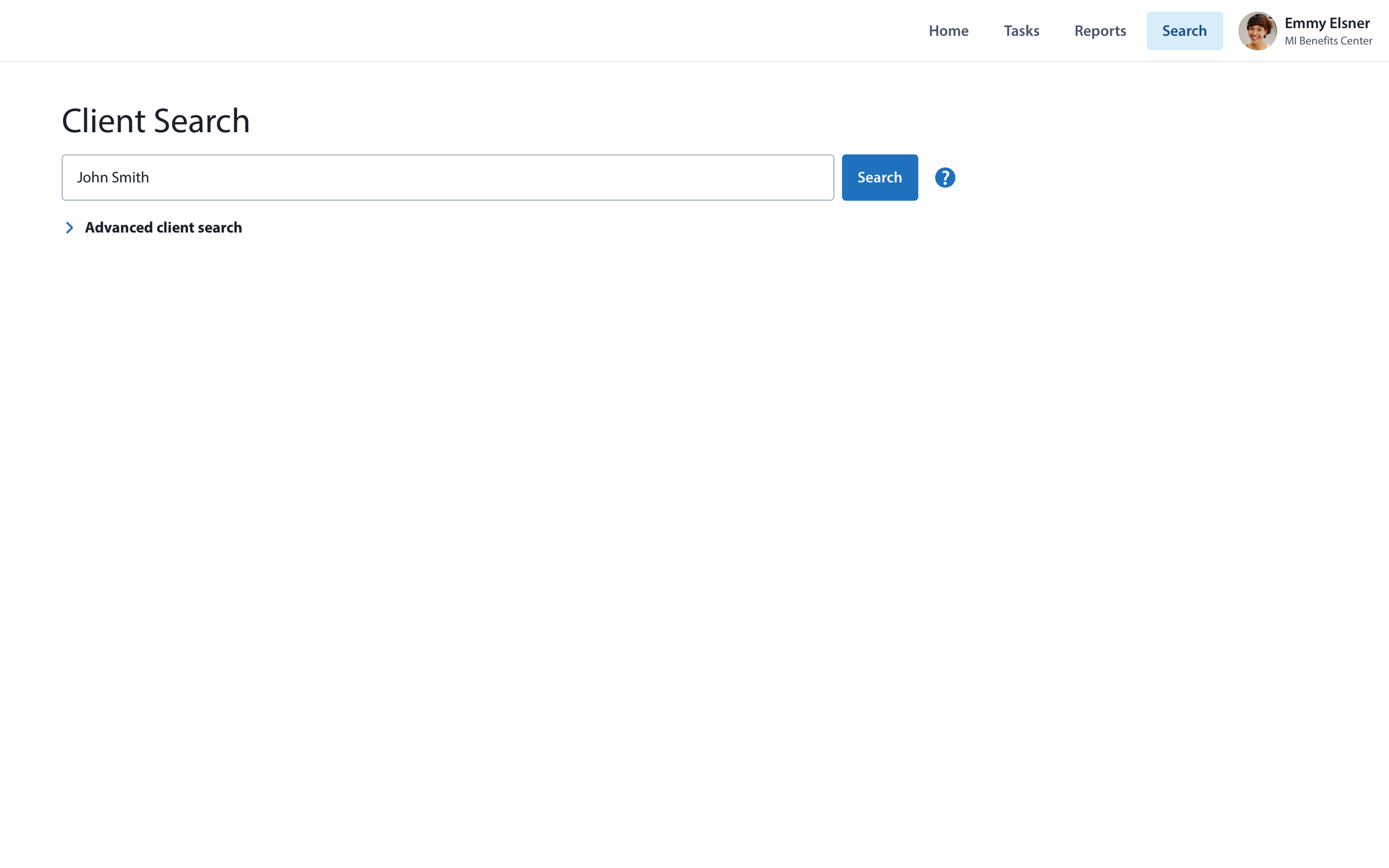 In an effort to make searching for clients more efficient, we created an advanced search option. Allowing users to search for keywords in specific fields provides more relevant results.